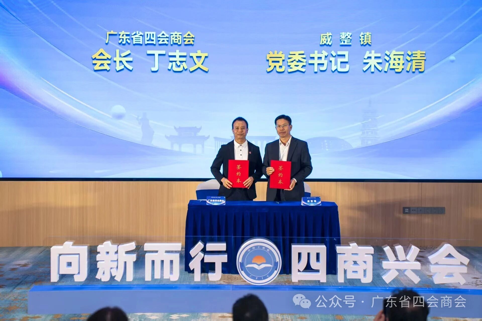 会上,一项重磅合作签约成为全场焦点——丁志文会长代表广东省四会商会,与威整镇党委书记朱海清共同签署框架合作协议,这一标志性时刻,宣告着商会与威整镇在产业联动、资源共享、乡村振兴等领域的合作正式落地生根,为镇域经济高质量发展按下“加速键”。